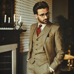 Traje a medida con chaleco verde cuadro marrón Super 130’s Dormeuil.